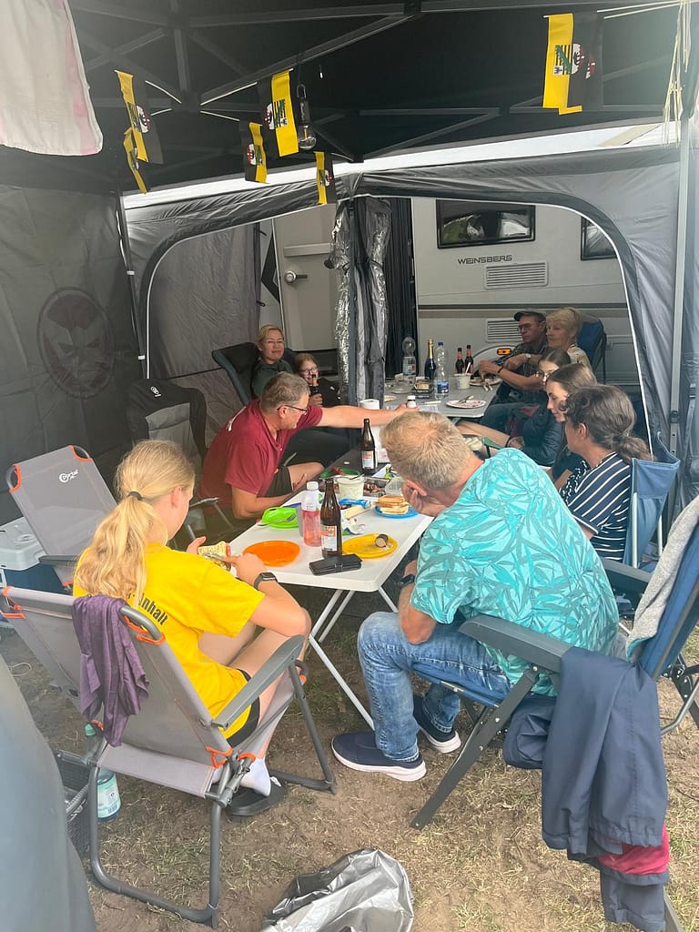 Bereits am Donnerstag reisten die Familien um Sonja Schlubeck, Lena Lippelt und Lia Hamann aus Sachsen-Anhalt mit ihren Sportpartnern nach Warendorf. Nach der Ankunft durften Sir Paco, Charles und Chili eine Kostprobe des Warendorfer Grases nach der langen Fahrt nehmen. Nachdem die Pferde in den Stall gebracht und versorgt waren, wurden die Ställe und der gemeinsame Stellplatz bezogen und mit Sachsen-Anhalt-Fahnen geschmückt. Beim ersten Grillabend schmiedete das Team Pläne für den kommenden Tag.