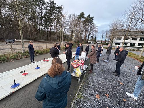 Neben dem sportlichen Anspruch stand auch der Gemeinschaftsgedanke im Mittelpunkt: neue Perspektiven auf dem Voltigier-Simulator mit Kai Vorberg, gemeinsames Eisstockschießen und der Besuch des Warendorfer Weihnachtsmarktes stärkten den Zusammenhalt der jungen Reiter.