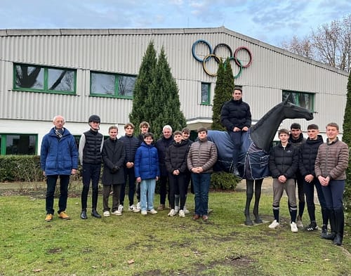 Am vergangenen Wochenende trainierte Justus in Warendorf gemeinsam mit 13 weiteren jungen Reitern aus ganz Deutschland im Rahmen des Projekts der Stiftung Deutscher Pferdesport, das seit 2022 von Wolfgang Schmitz-Heinen gefördert wird. Mit seinem Pferd „Der kleine Prinz“ arbeitete er intensiv unter der Anleitung der Bundestrainer Caroline Roost und Hans-Heinrich Meyer zu Strohen und erhielt wertvolle Impulse für seine weitere sportliche Entwicklung.