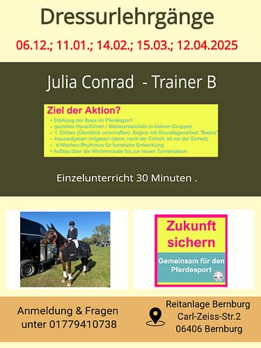 Zukunft sichern – Dressurlehrgang Bernburg 06.12.25, 11.01.26, 14.02.26, 15.03.26, 12.04.2026