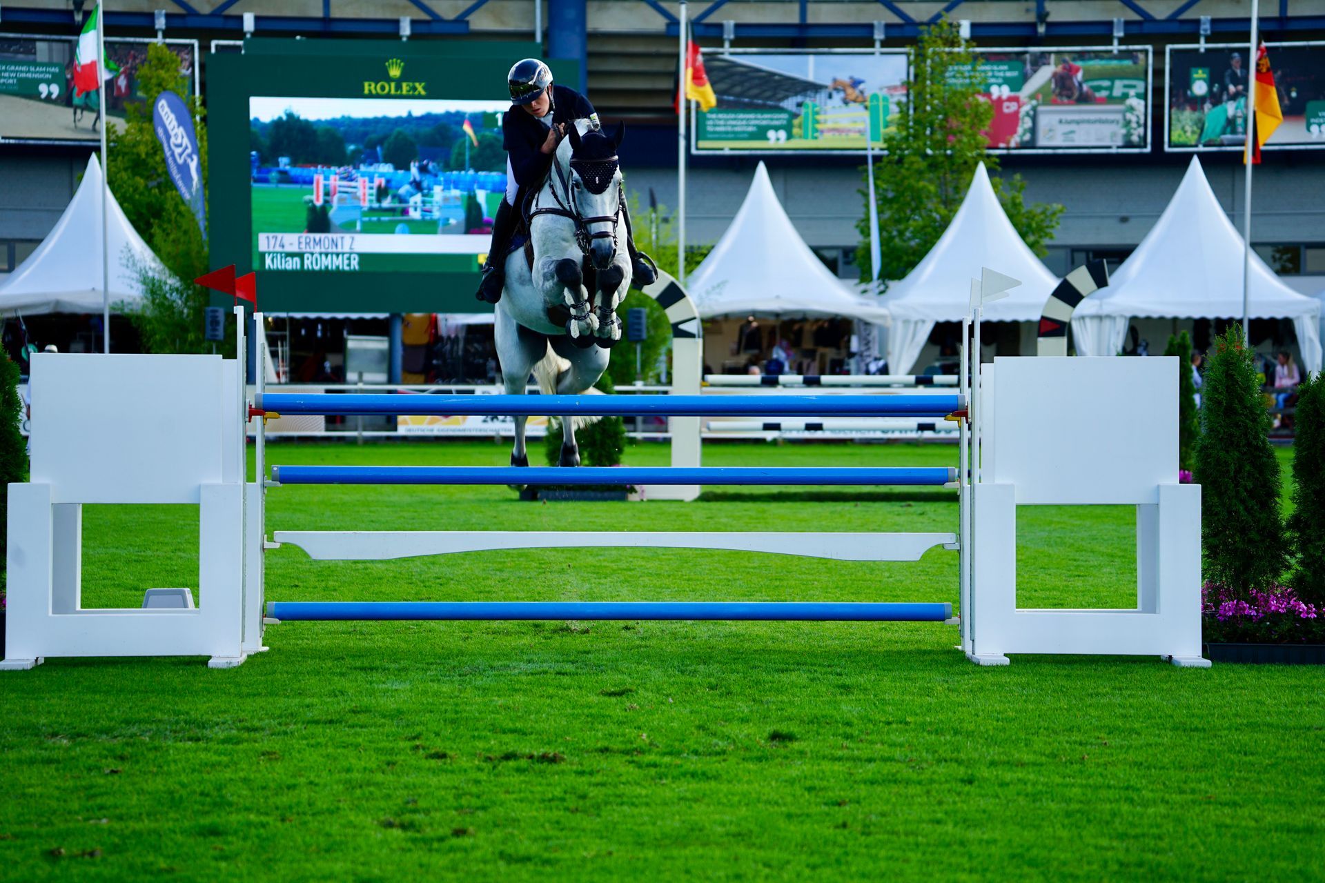 - Kilian Römmer und der neunjährige gekörte KWPN-Hengst Ermont Z hatten leider zwei Abwürfe, lieferten aber eine wertvolle Runde.