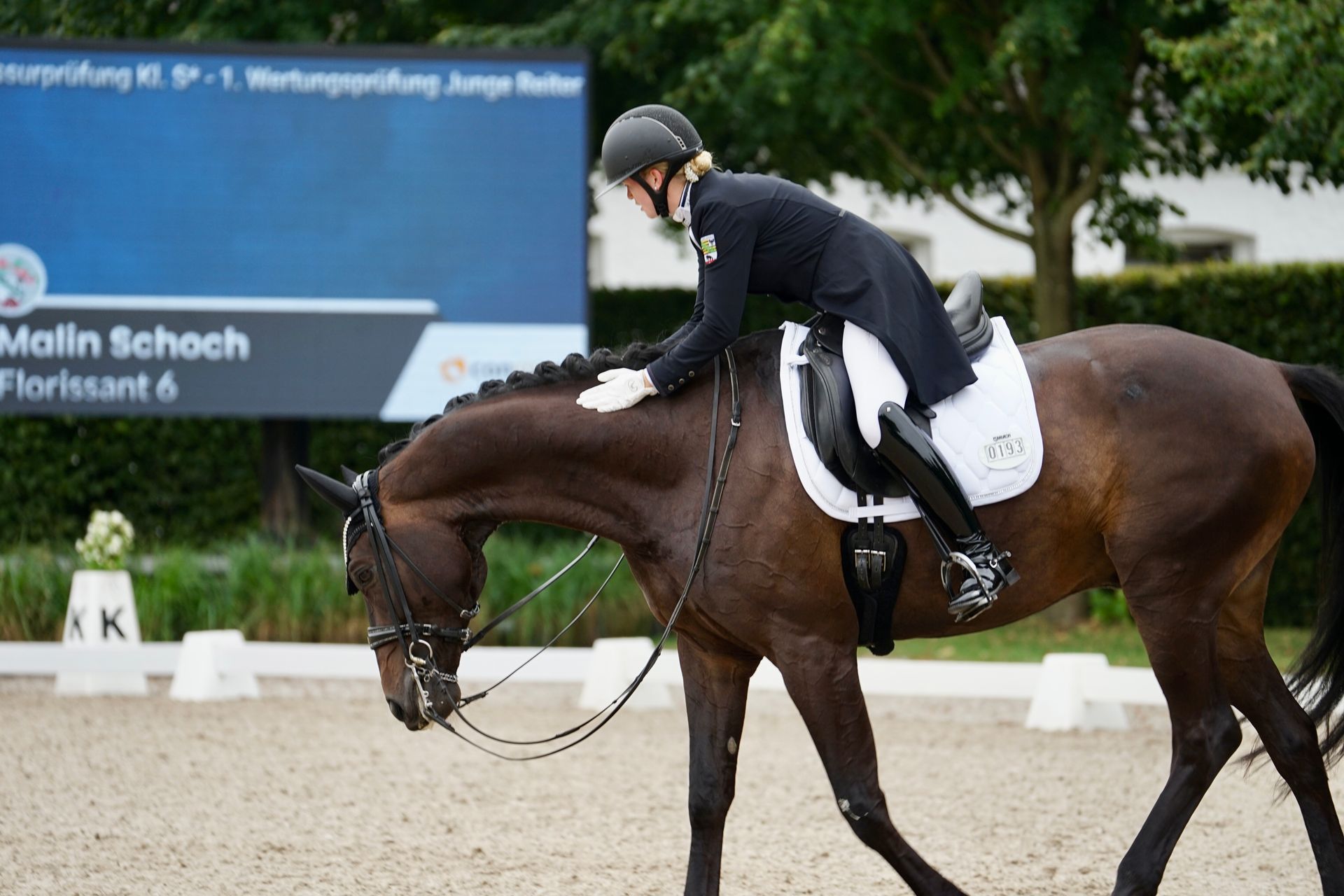- Malin Schoch ebenfalls Junge Reiter und ihr neunjähriger sehr unerschrockener Florissant 6 hatten ein gutes Gefühl nach ihrer S-Dressur, doch die Wertnoten fielen leider etwas streng aus.