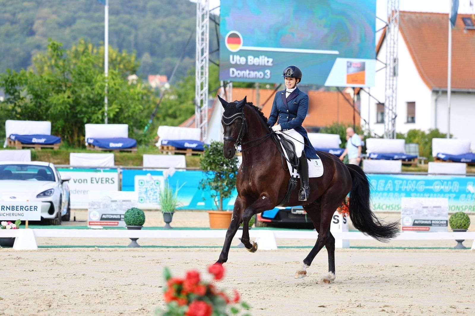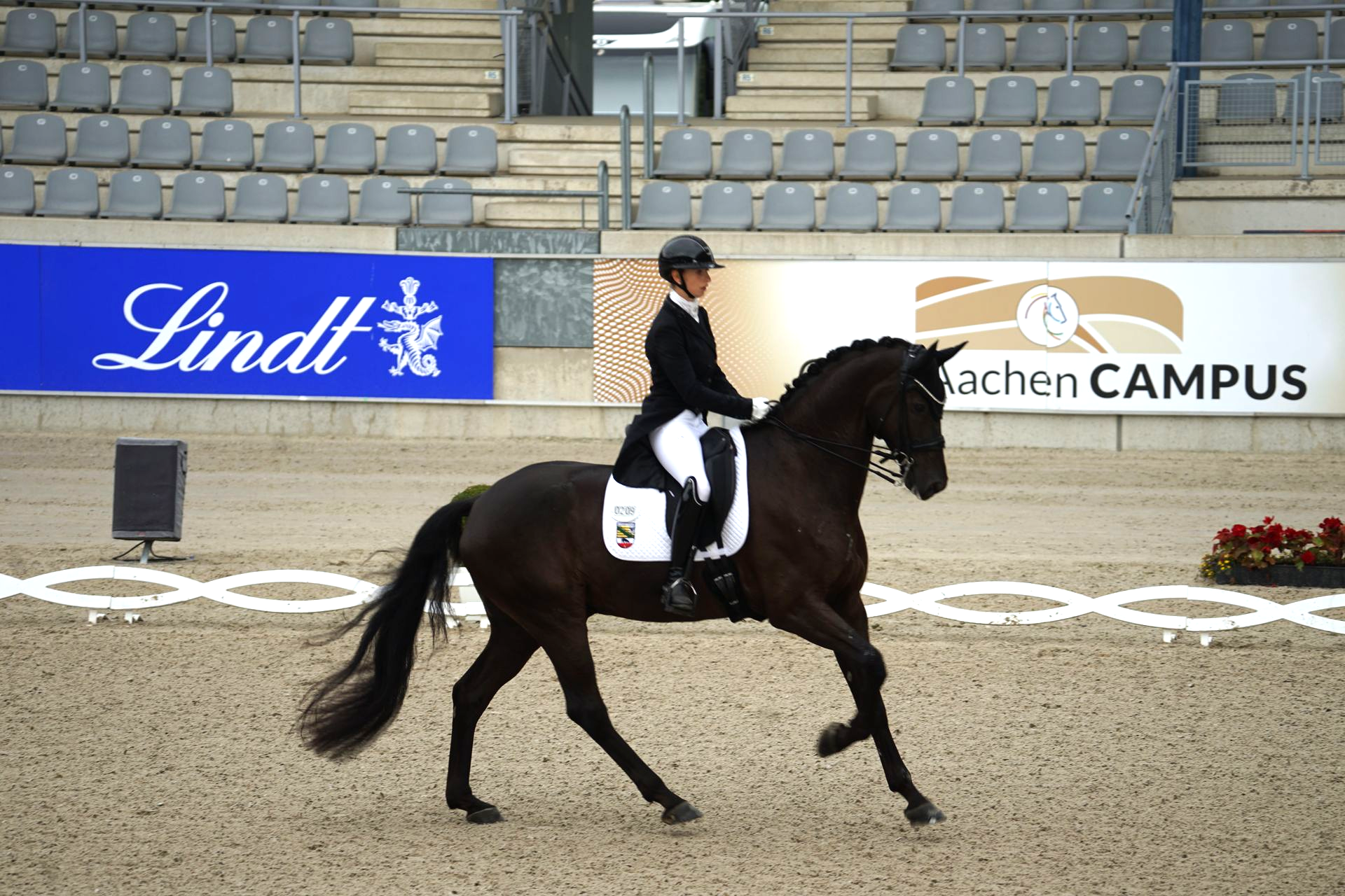 Helmsdorf/Gerbstedt) qualifizierte sich mit ihrem erst 8-jährigen Hannoveraner Dontano v. DeLorean über Platz 12 direkt fürs Kürfinale der besten 15 von 45 Paaren. In der ersten großen S-Kür seines jungen Pferdelebens erreichte Dontano 67,03 % – ein gelungener Final-Einstand.